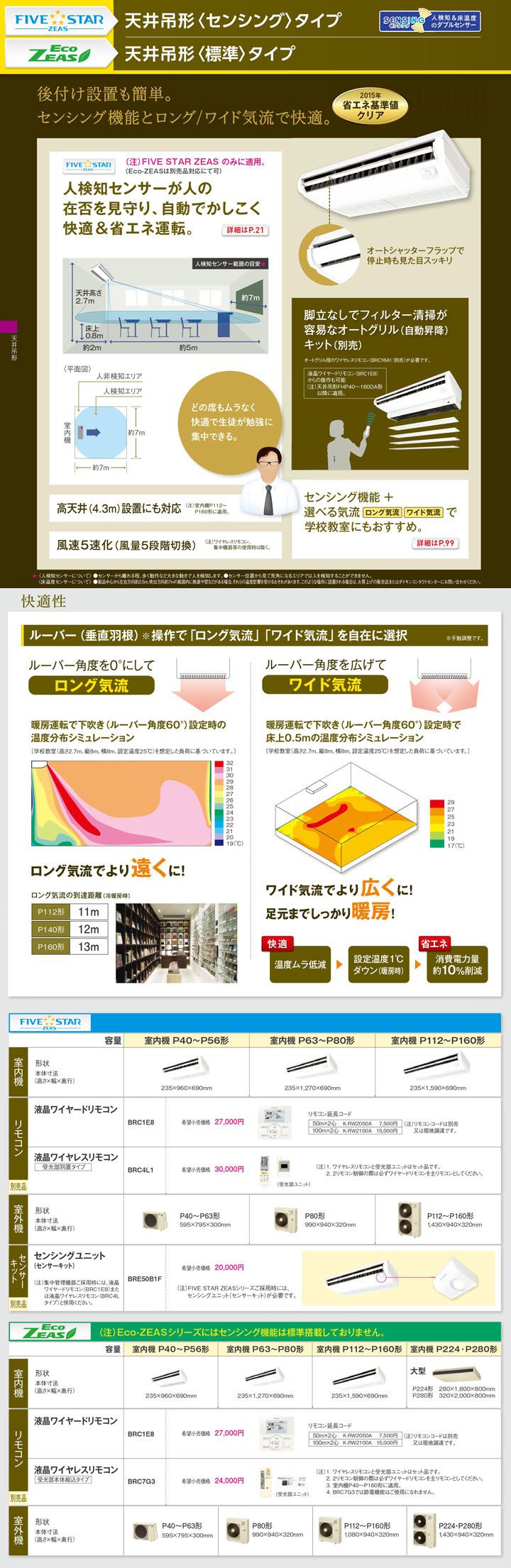 | 高天井対応 | 天井の高い空調ゾーンでも快適気流を足元までお届けします。 |