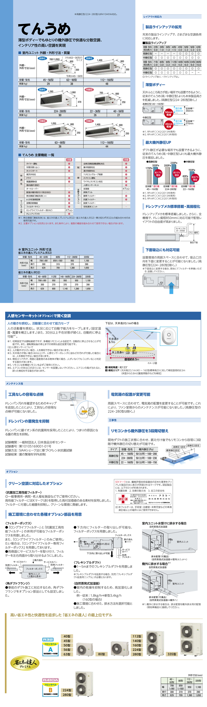 | ドレンアップメカ | 天井高最大850mmまでのドレン揚程をサポートし、施工性を向上させます。 |