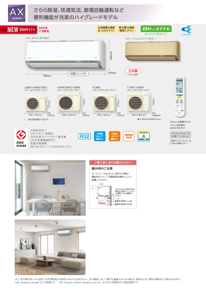 | 室外機サイズ (高さx幅x奥行) | 高742×幅850(+89)×奥行320(+66)mm |